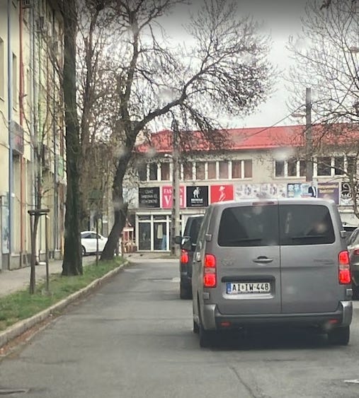 I rushed to my car hoping for shooting a picture while he is waiting for his minivan, but I only could capture his leaving most probably for his movie set…