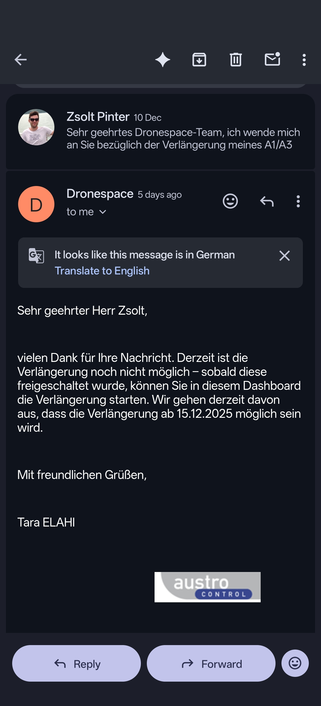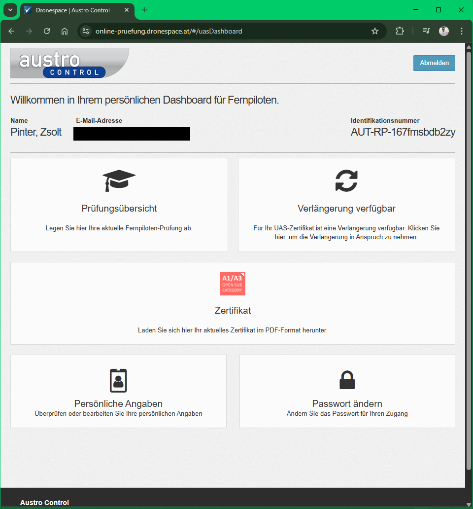 I tried to log in to AustroControl, but there was no option to extend it so I asked them via mail. (Why Austria? I will let you know later below).