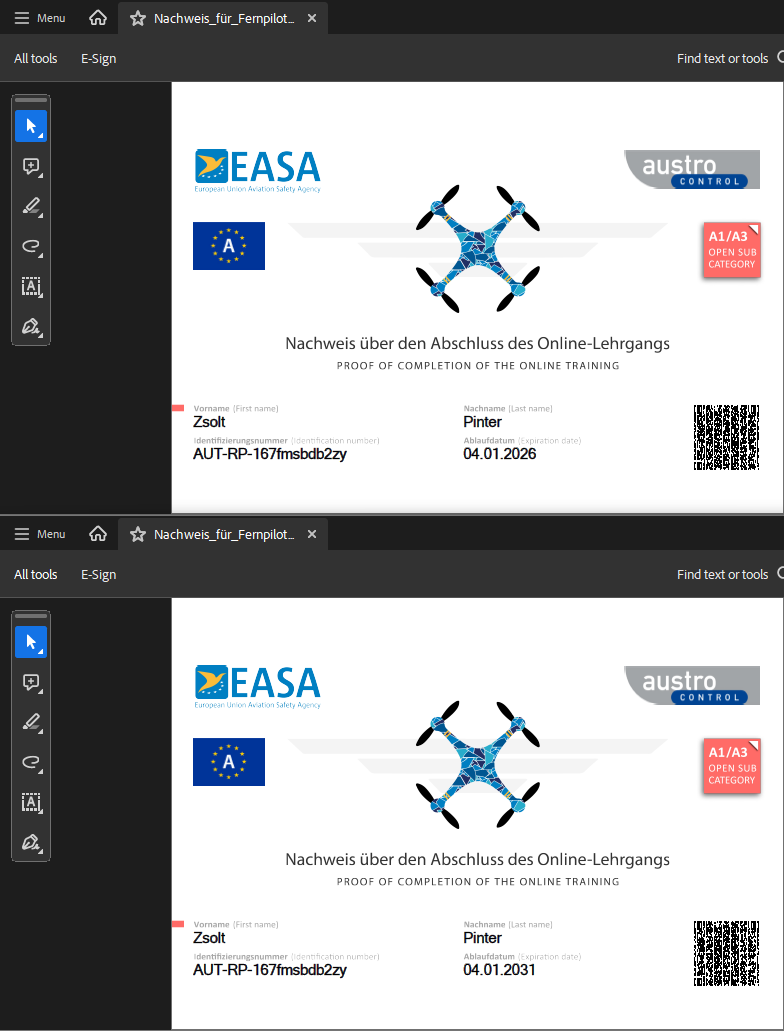 I was among the first to acquire the official A1/A3 certificate to be able to fly drones in Europe. This means the certificate is now about to expire.