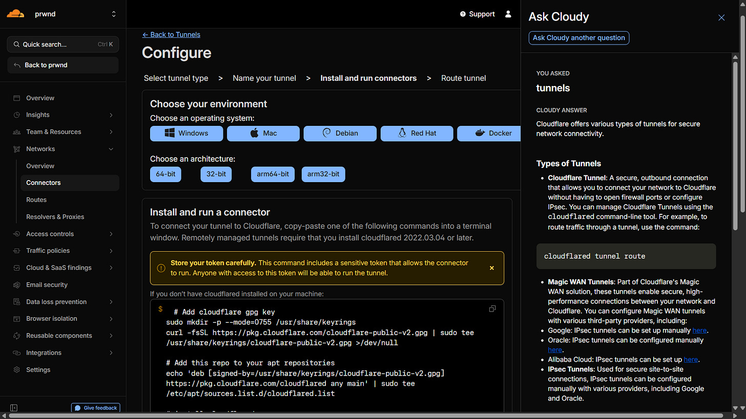 We are going to use a tool called Cloudflared to create a secure “tunnel” from your device out to Cloudflare’s network.